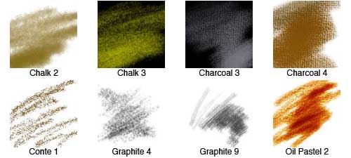 The brushes in this latest collection for Synthetik Studio Artist 3.x (Nagel Series 14) are all designed to mimic the appearance and behavior of some familiar dry media tools. These include chalk, charcoal, conte, graphite and oil pastels, as well as a felt tip marker and a few brushes for blending your images. The graphite brushes include support for tilt and pressure so that you can simulate tilting a pencil to produce a wide edge or applying pressure to darken your stroke. The chalk brushes are textured to produce grainy results. The charcoal brushes also produce grainy results, although some of them also include a textured background for simulating a stroke drawn on canvas. (For these, lighter strokes produce a more visible canvas texture, while heavier strokes conceal the canvas. I'll be presenting a tutorial on this so that you can create your own brushes with textured backgrounds.) All of the brushes in the collection are, of course, fully customizable so that you can modify them to suit your needs.