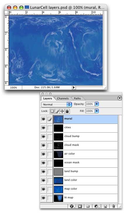To make matters even better, you can also, with the single click of your mouse, generate a multi-layer Photoshop file containing all of the different types of maps and spherical representations, each on is own layer.