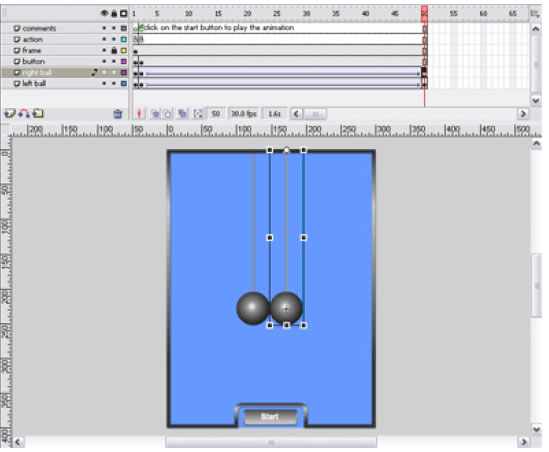 4. In frame 50, create another keyframe and position the metal ball symbols, as shown in Figure 5.