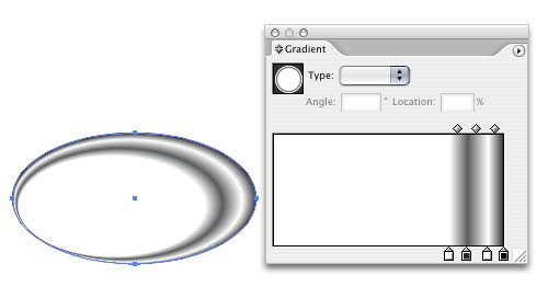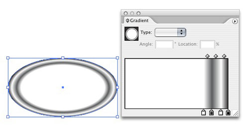2. Now apply a gradient to the fill of the object. You can do this by clicking on a gradient swatch in the Swatches palette or by creating your own manually in the Gradient palette. Make sure the Type is set to "Radial" in the Gradient palette.