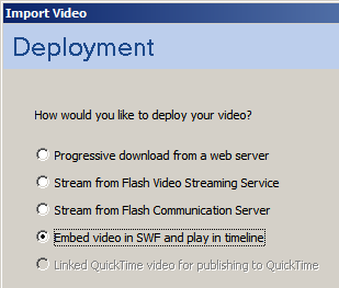 Figure 10: We definitely want to embed the video inside the Flash movie.