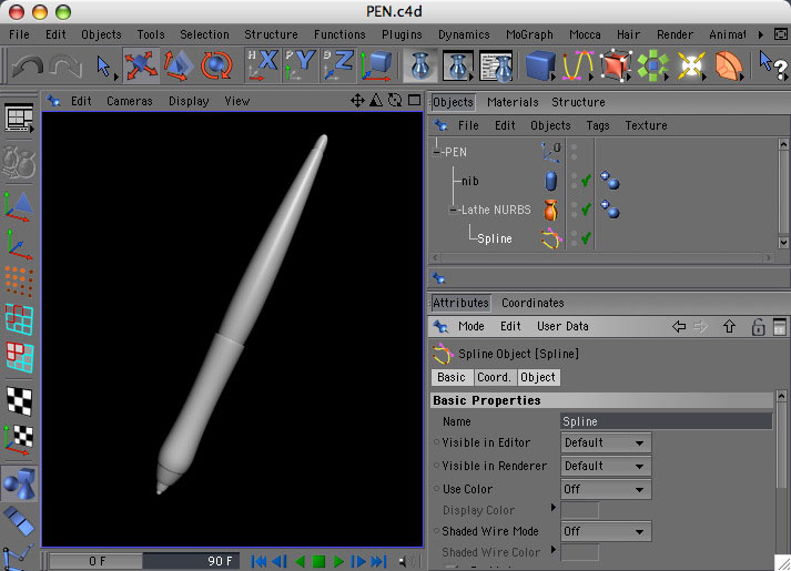 I quickly knocked out this model for the picture on the article, and have absolutely no reason to keep it around. If you need a model of a graphic stylus..... MAKE IT. It's as easy as drawing a spline shape (just like Illustrator), placing it into a LatheNURBS object (see NURBS tutorial) and click on a primitive object for "Capsule".