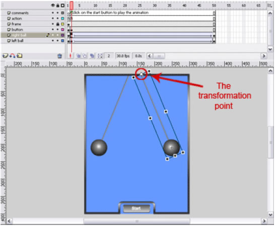 3. In the first keyframe of the animation, position the metal ball symbols as shown in Figure 4. The transformation point is as shown.