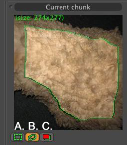 A. Use the rectangular marquee that creates a range of pixels to be used from the chunk. (!! Hold down the shift key to add selection to the current chunk !!)